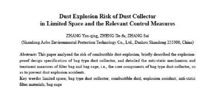 #The paper name "Dust Explosion Risk of Dust Collector in Limited Space and the Relevant Control Measures"
